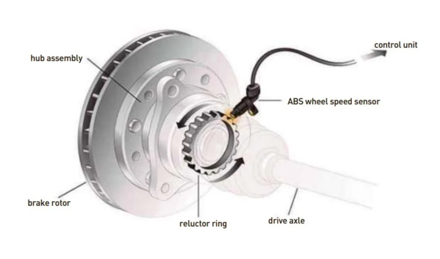 The sensor is usually located on the hub of the wheel or behind the brake rotor. When the car is moving, the sensor measures the speed of the wheel and sends a signal to the ABS control unit. The control unit then uses this information to determine when to apply the brakes.